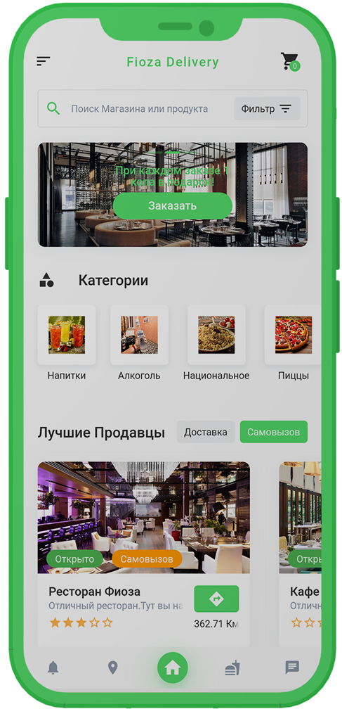 Наше приложение с удобным и приятным интерфейсом. Это не повод чтобы гордиться, потому что все приложения должны быть понятным, красивым и удобным. А вот чем мы гордимся в Fioza Delivery на самом деле.